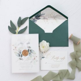 Elegant Greenery Monogram Vellum Wedding Invitation With Wax Seal Swpi102