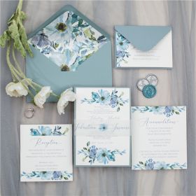 Modern Ethereal Light Blue Floral Wedding Invitation With Vellum Belly Band Swi065