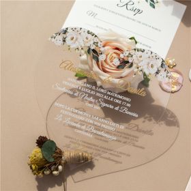 Unique Greenery Floral Heart Shaped 1Mm Clear Acrylic Wedding Invitations Sway002