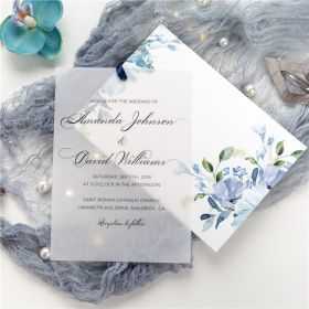 Blue Floral Layered Vellum Paper Wedding Invitations Swvl009