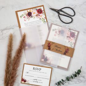 Fall Rustic Floral Vellum Jacket Wedding Invitation With Craft Paper Backer Swpi101