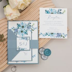 Blue Floral Pattern Wedding Invitations With Cute Tag Swi046