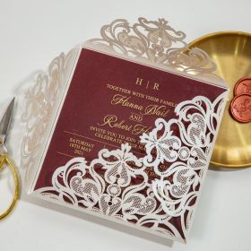 Gold Foil Clear Acrylic Wedding Invitations With Ivory Laser Cut Pocket Sapl003
