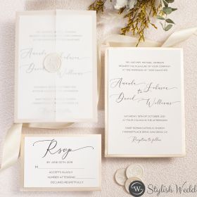 Romantic Vellum Wedding Invitations With Calligraphy And Floral Wax Seal Swpi130