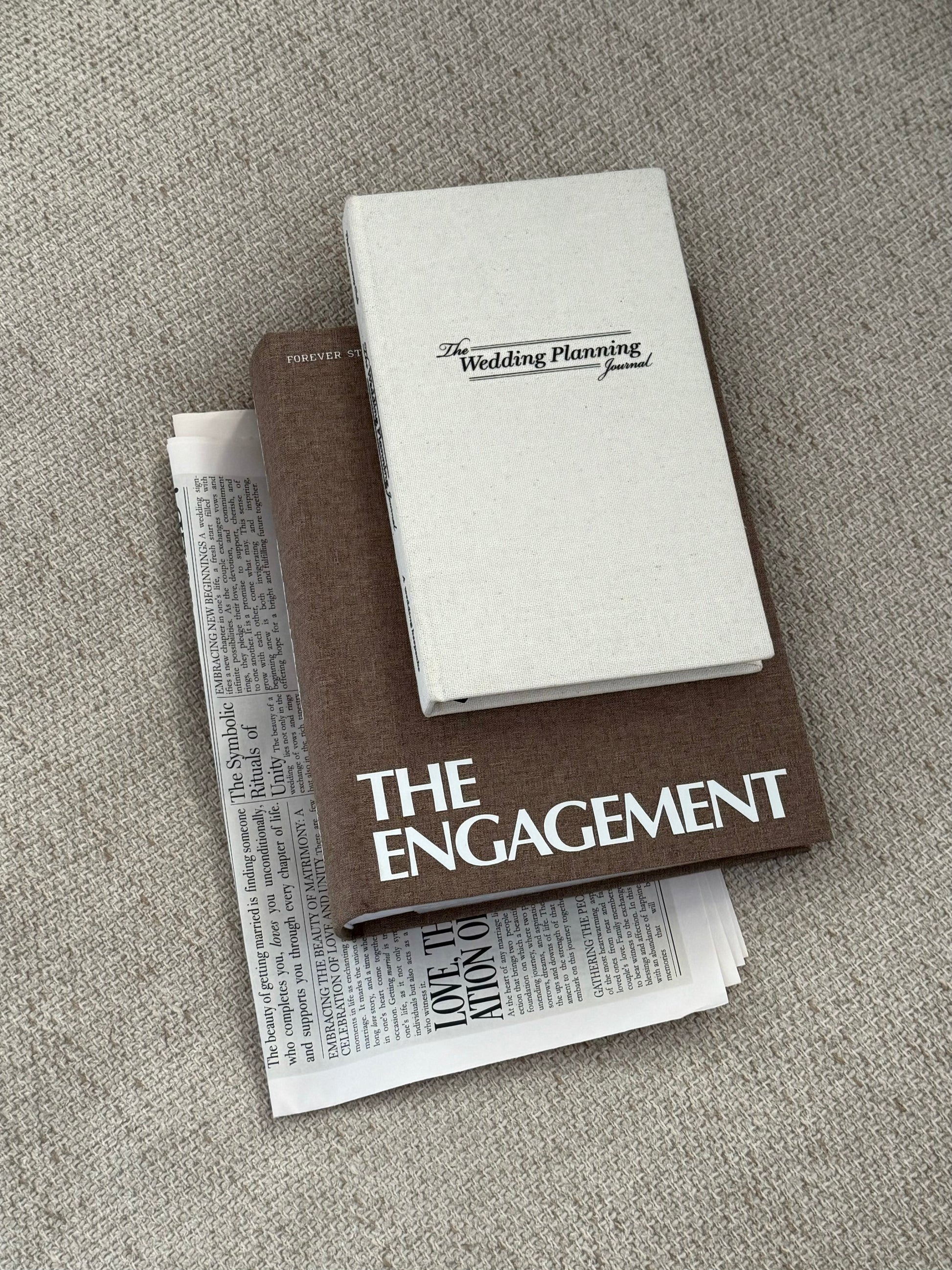 Shop Our Exclusive Gift Bundles! Find the perfect gift for yourself or a newly engaged friend with our exclusive bundle! This carefully curated package includes: Wedding Newspaper Prop: The ideal addition to your engagement photos and a stylish accessory for all your wedding planning moments. This ready-to-use vintage-style newspaper will elevate your wedding experience. Engagement Photo Album: Preserve your cherished moments in style with this beautiful keepsake that resembles a stunning coffee table book, perfect for showcasing your love story. Classic Linen Wedding Planning Journal: Capture your memories, ideas, and milestones in this elegant wedding planning journal, making it a treasured keepsake of your journey. Enjoy these favorite items at a better price when bundled together€”making it the ultimate gift for any engagement celebration!