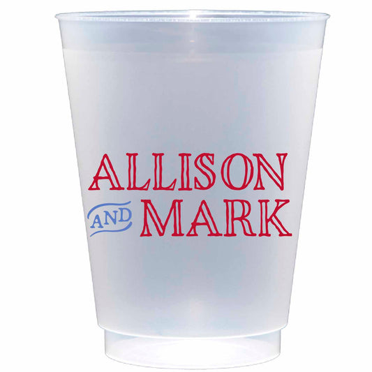 Shatterproof frosted flex cups available in a variety of sizes and ink colors.