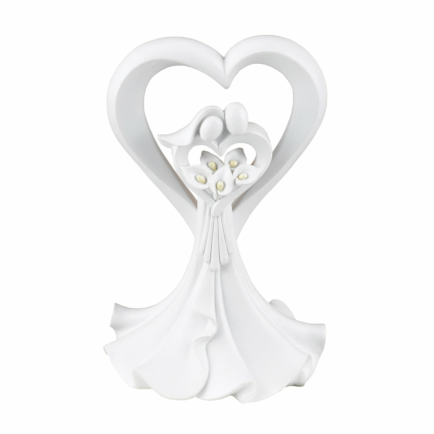 This lovely couple becomes one as they hold a bouquet of calla lilies, creating this elegant, resin cake top. A lovely addition for your guestbook table, or to adorn the top of your wedding cake. Product dimensions: - Height: 6 1/4" - Base Diameter: 3.75"