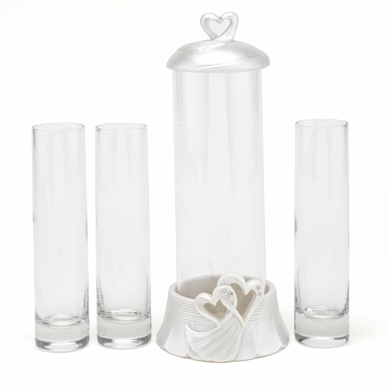 Sand ceremony set includes large cylinder with removable lid and glazed resin base and three smaller cylinders. The large cylinder measures 9" tall and 3" in diameter; 11 3/4" tall, 4 1/4" in diameter including lid and base; the small cylinders measure 7 1/2" tall and 1 3/4" in diameter. Ceremony set not available personalized and sand is sold separately. Product dimensions: - Weight: 0.10 lbs
