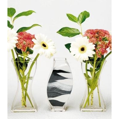 The Unity Sand Ceremony is a fresh alternative for the celebrated "unity candle ceremony" incorporated into many of today's weddings. The essence is to symbolize the union of "two into one". This sand version is not only beautiful and interesting, but also more appropriate for an outdoor setting. With the addition of fresh flowers, these distinctive vases will make an intriguing addition to a home's decor. The addition of coordinating miniature nesting vases and contrasting colors of sand allows children to be invited to take part in a "Family Sand Ceremony". Standard vase requires 2 bags of sand. Each vase 3 3/4" x 2" x 8" H Vases are engravable- engraving not included. Product dimensions: