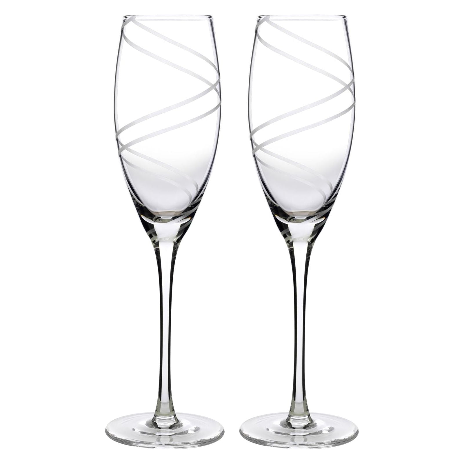 Set of two hand-blown swirled long-stemmed toasting flutes. No two flutes are exactly alike. Flutes measure 10" tall, 6 3/4 oz. Product dimensions: - Weight: 1.80 lbs