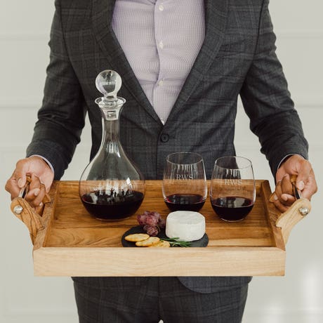 Custom Engraved Glass Decanter Gift Set with Wine Glasses - Classic Monogram - Unique Gift for Her