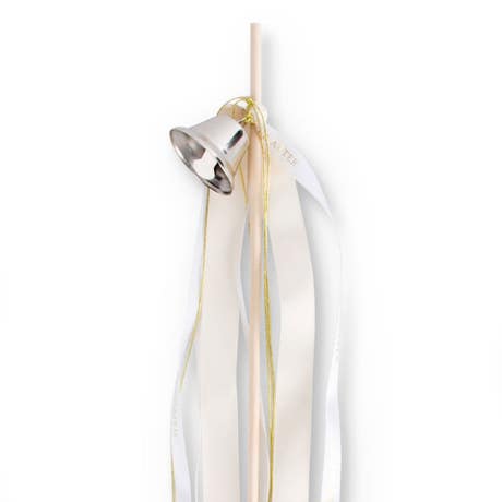 Kit includes: 12 dowels, 12 bells, precut ribbon, gold twine for 12 wands