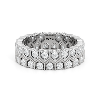 This eternity ring features an unbroken sequence of chevron motifs, each peak and valley capturing the dynamic essence of the Art Deco movement. The geometric pattern, an important element of Art Deco design, is enhanced by the brilliance of carefully set diamonds, showcasing symmetry and rhythm in perfect harmony. The ring's radiance unfolds like the reflections on the waters of the famed Piscine Molitor. Light interacts with the ring's surface, gleaming and changing with every graceful move, evoking elegance in motion.