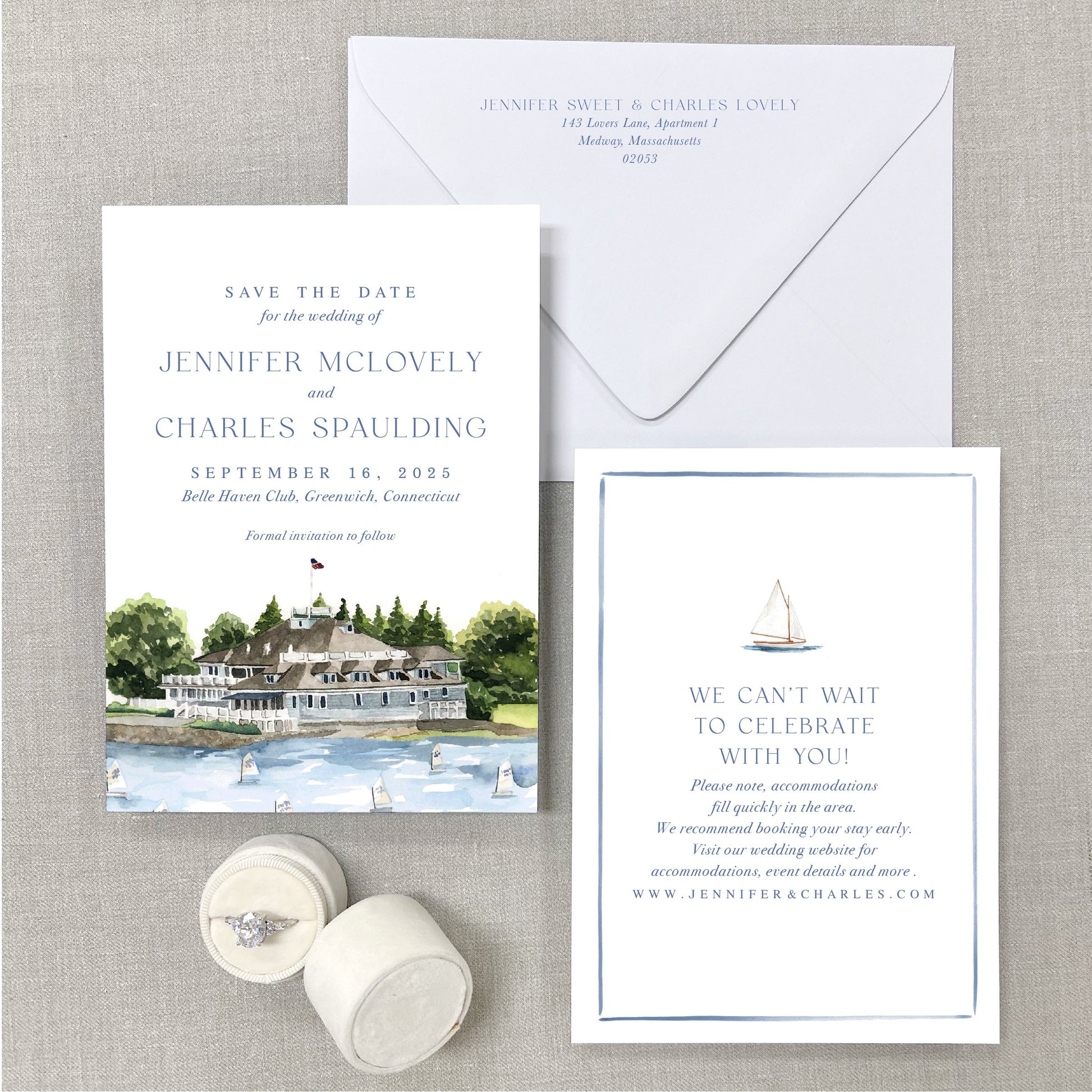 Belle Haven Club, Greenwich, Connecticut, Watercolor Wedding Venue Save The Dates