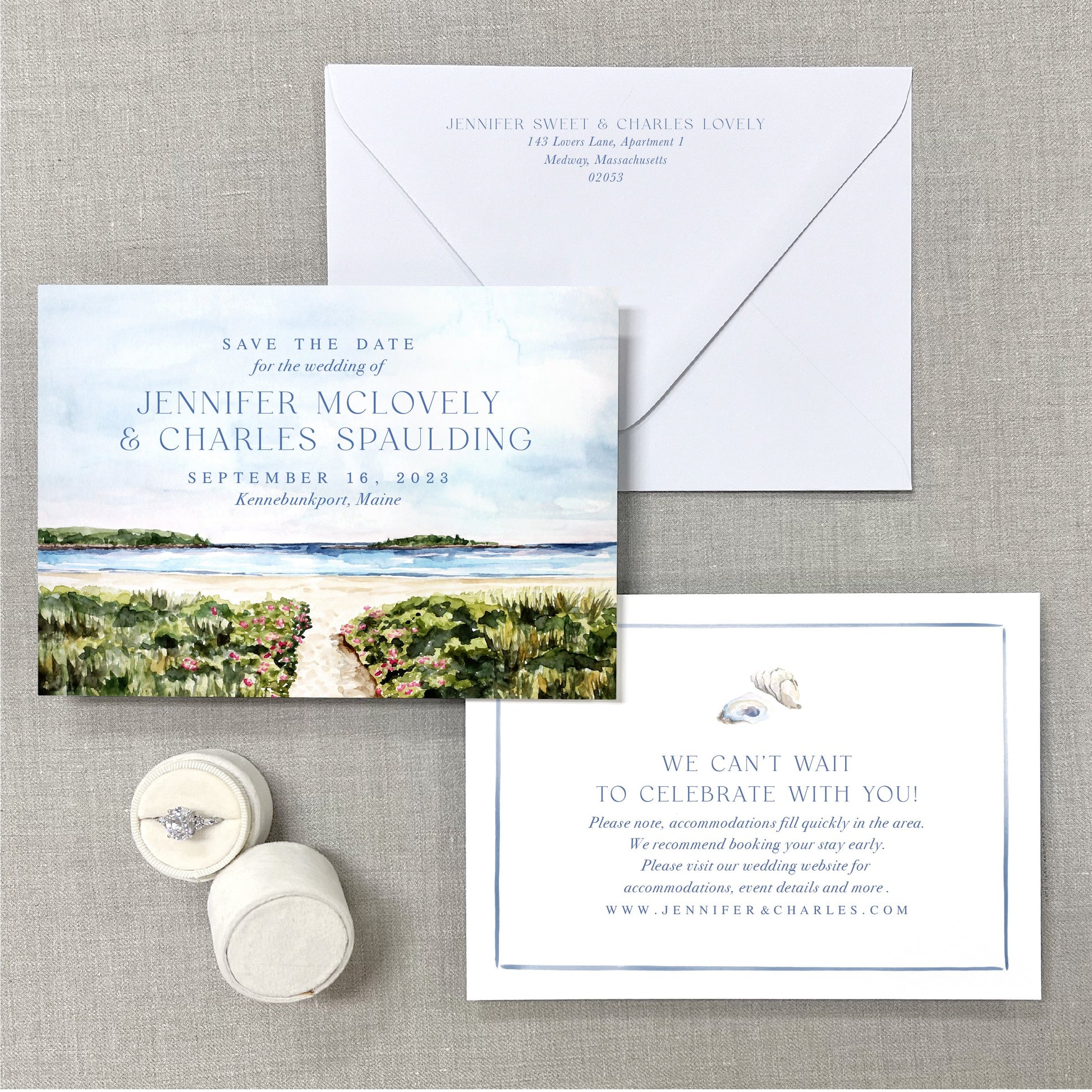 Kennebunkport Beach, Maine Watercolor Scene Save The Dates