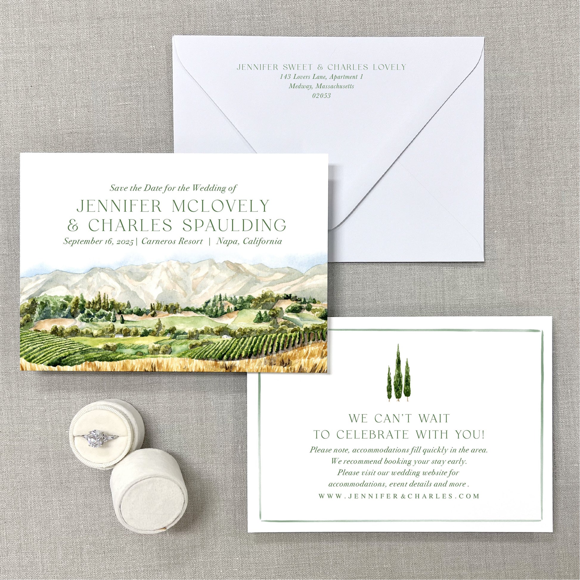 Carneros Resort, Napa, California Watercolor Wedding Save The Dates