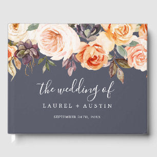 Rustic Earth Florals Purple Monogram Back Wedding Guest Book