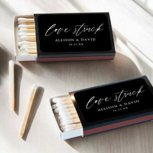 Black Calligraphy Love Struck Wedding Favors Matchboxes