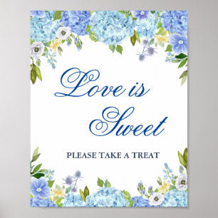 Blue Hydrangea Greenery Wedding Dessert Bar Poster