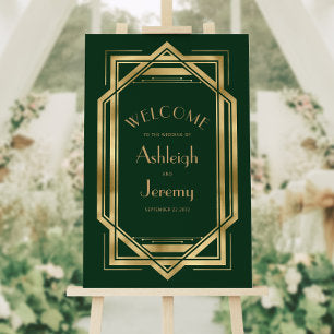 Vintage 1920s Deco 20x30 Green Gold Wedding Foam Board