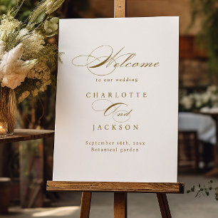 Gold Vintage Classic Script Wedding Welcome Sign