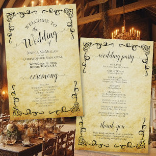Vintage Parchment & Scrolls Budget Wedding Program