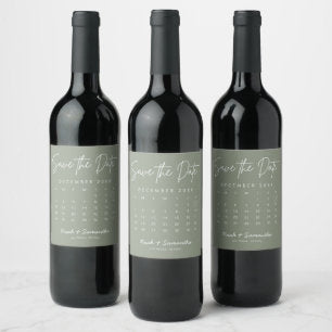Sage Green Save the Date Calendar Minimalist Wine Label