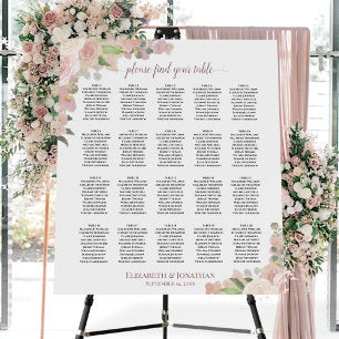 20 Table Rustic Pink Floral Wedding Seating Chart Foam Board