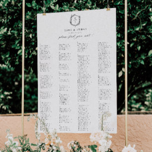 Botanical Crest Monogram Wedding Seating Chart Foam Board