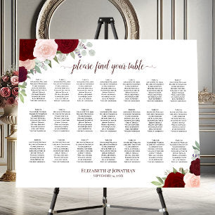 21 Table Red & Pink Roses Wedding Seating Chart Foam Board