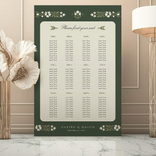 Vintage Green White Floral Wedding Seating Chart Foam Board