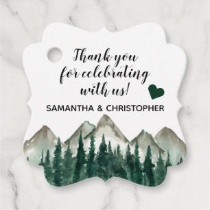 Rustic Watercolor Pine Mountains Wedding Thank You Favor Tags