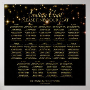 14 Table Black Wedding Seating Chart w/ gold stars