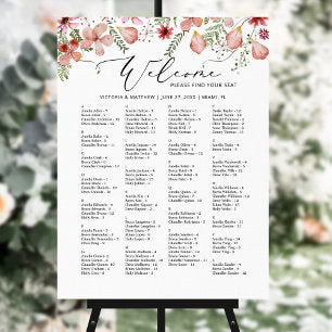 Alphabetical Pink Floral Wedding Seating Chart Foam Board