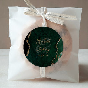 Emerald Green Gold Agate Script Wedding Classic Round Sticker