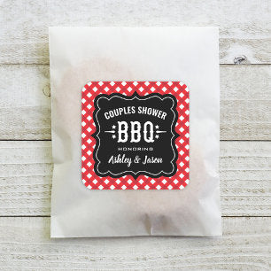 Rustic Red Gingham BBQ Wedding Couples Shower Square Sticker
