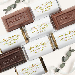 Calligraphy Heart Wedding Gold Mr. and Mrs. Hershey's Miniatures