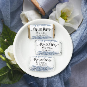 Chinoiserie Blue Floral Mr and Mrs Script Heart Hershey's Miniatures