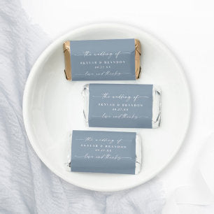 Simple Solid Color Dusty Blue Wedding Monogram Hershey's Miniatures