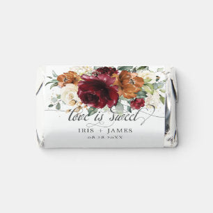 Burgundy Ivory Rust Floral Wedding Love is Sweet Hershey's Miniatures