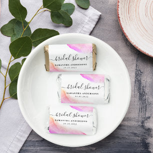 Abstract Watercolor Pink Brush Strokes & Gold Hers Hershey's Miniatures