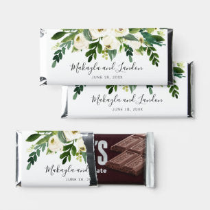 Elegant Greenery Roses White Floral Wedding Hershey Bar Favors