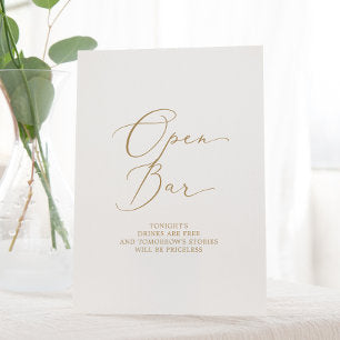Delicate Gold Calligraphy Wedding Open Bar Pedestal Sign