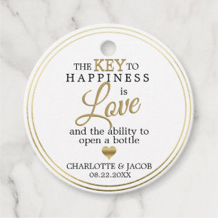 GOLD Wedding Key to Happiness is LOVE Open Bottle Favor Tags