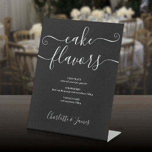 Cake Flavors Black and White Signature Script Pedestal Sign
