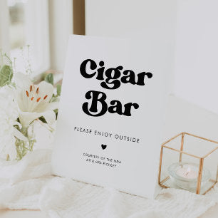 Stylish retro black & white wedding Cigar Bar Pedestal Sign