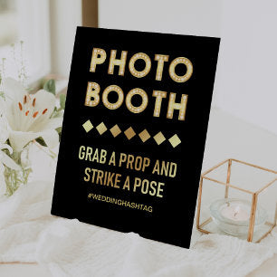 Vintage Gold Marquee Letters Wedding Photo Booth Pedestal Sign