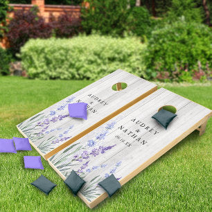 Rustic Faux Wood Lavender Wedding Cornhole Set