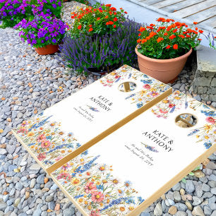Country Wildflower Floral Wedding Anniversary Cornhole Set