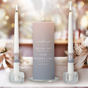 Ombre Pink & Blue Bride & Groom Monogram Wedding Unity Candle Set